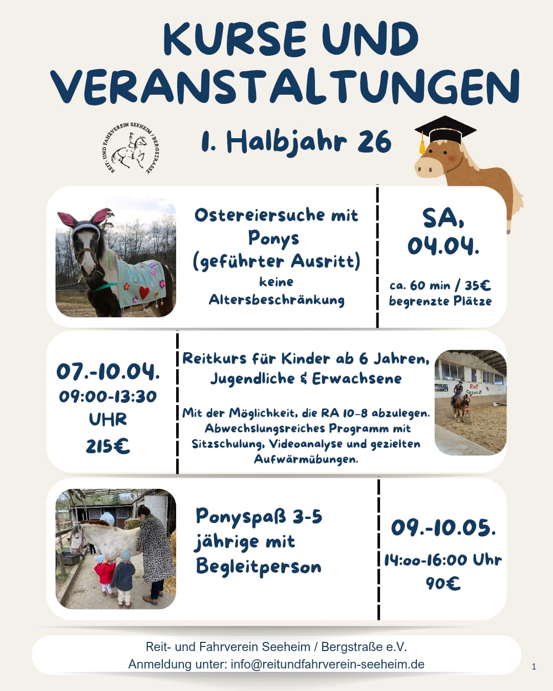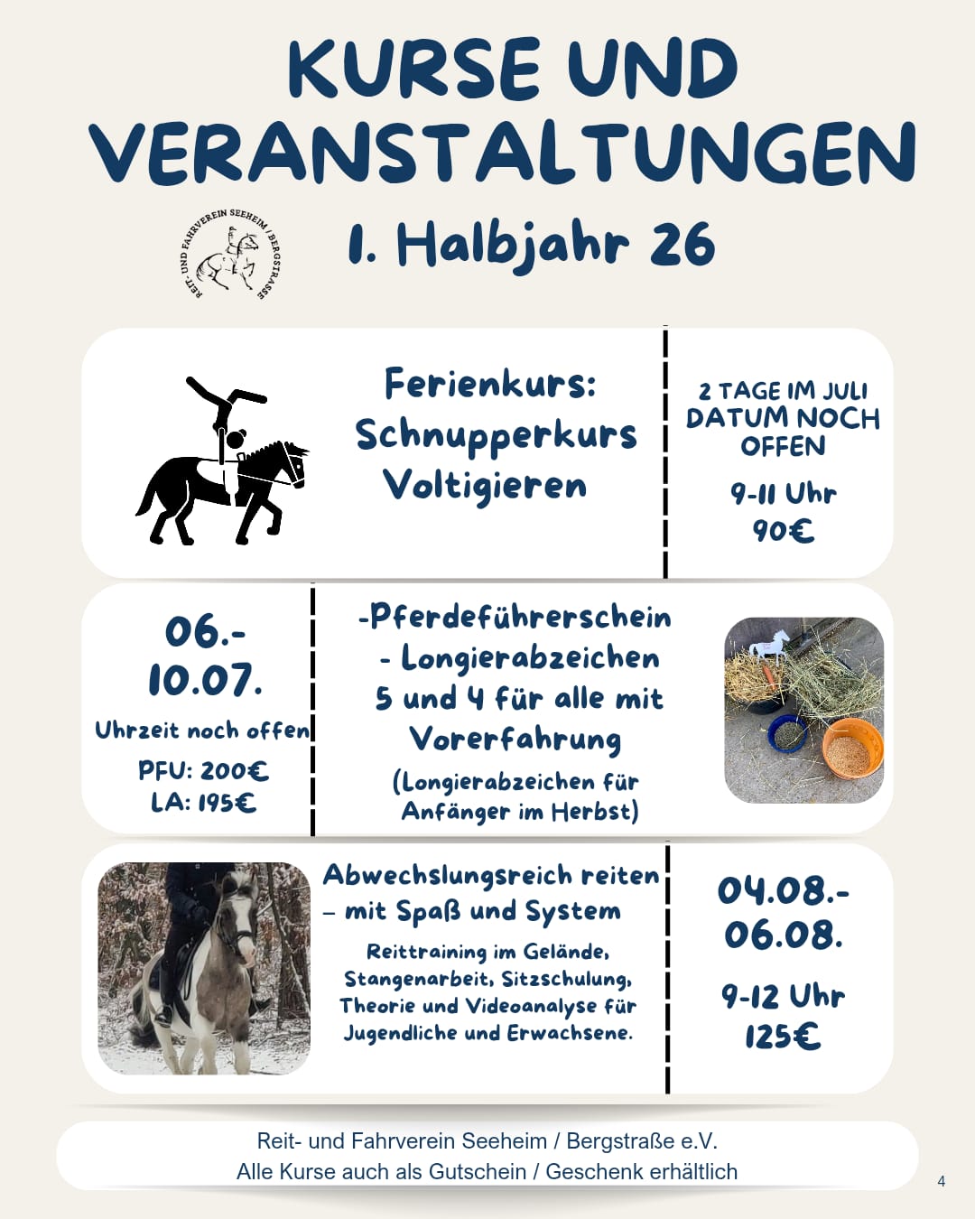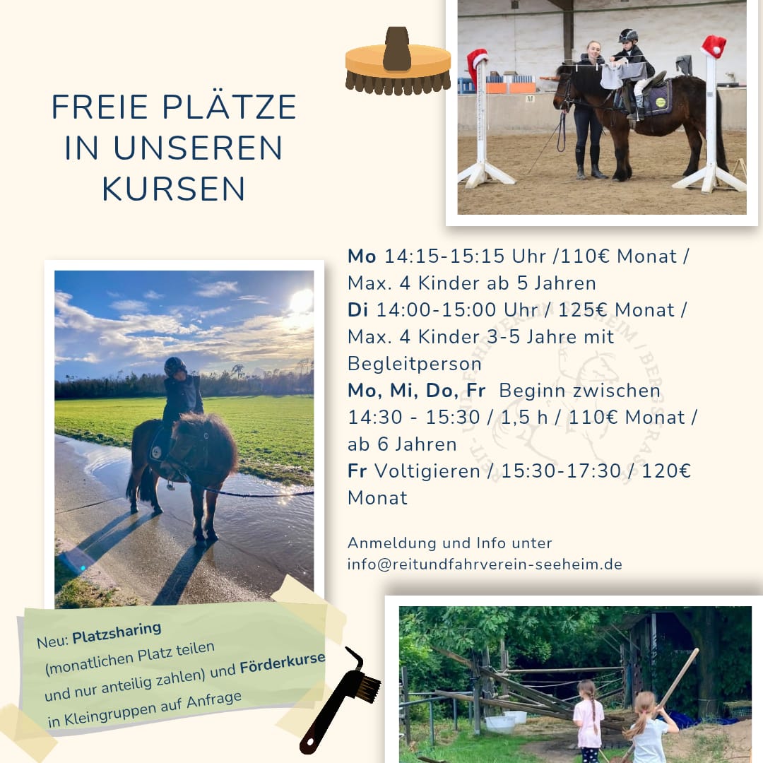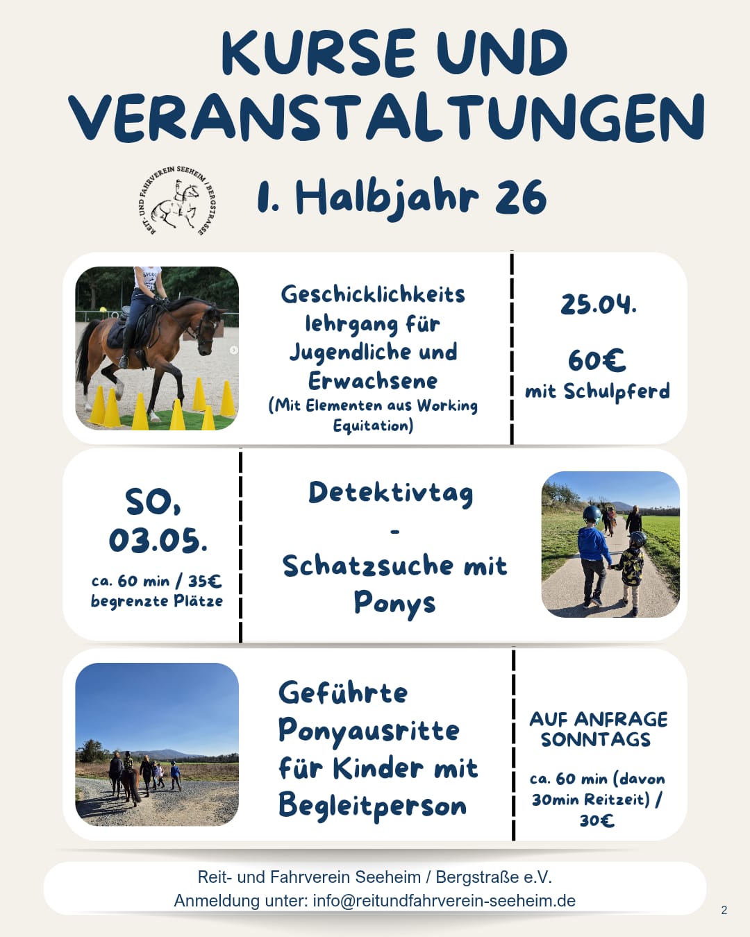 Anmeldungen für die Kurse bitte an info@reitundfahrverein-seeheim.de.
